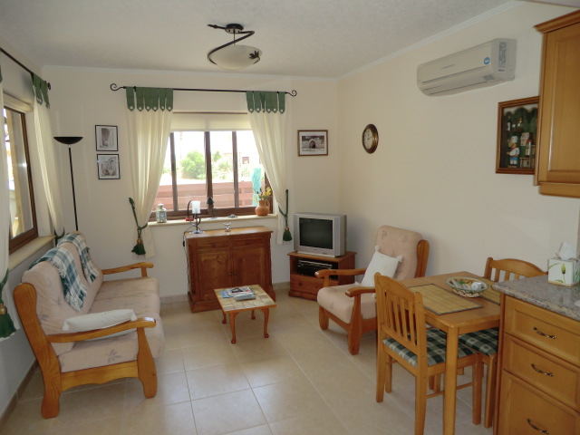 Living roomAir-conditioning/heating unit, sun blinds, open plan to kitchen